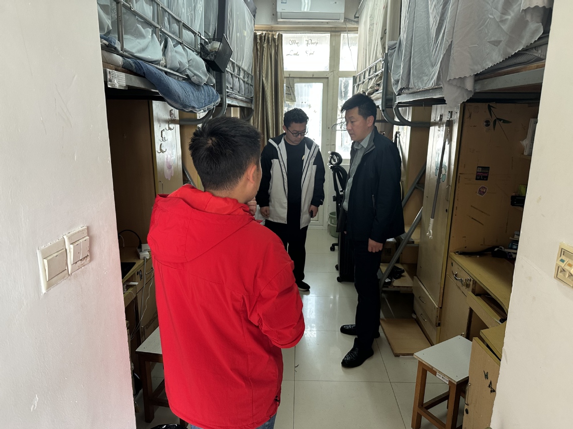 学院党委书记刘洋带领辅导员、班主任深入学生宿舍,重点检查违规使用大功率电器使用明火、宿舍内吸烟、堵塞消防通道、损坏消防设施等问题检查过程中,刘洋与同学们深入交流,详细了解同学们的生活习惯,反复叮嘱同学们要严格遵守宿舍管理规定,提高安全防范意识,共同守护宿舍安全底线。他强调建立安全隐患台账,明确整改责任人,现场督促整改确保安全隐患早发现、早整改、早防范。
